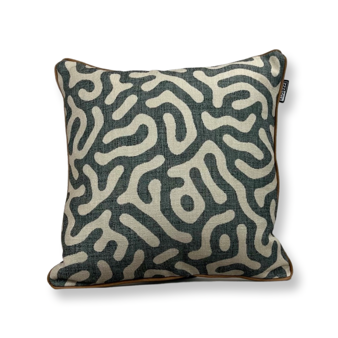 Sierkussen van 40x40cm uit onze Jungle collectie. Geschikt voor binnengebruik. Afgewerkt met een bruine leren bies. De binnenhoes is gevuld met wattine.