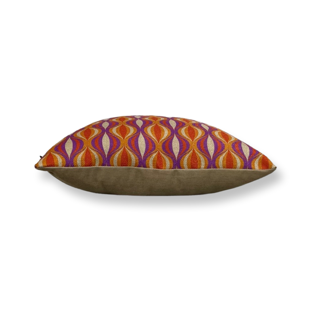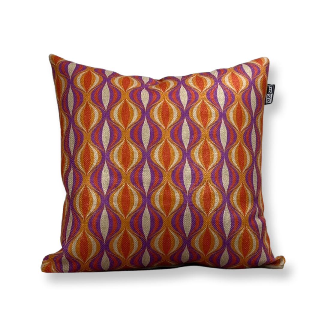 Sierkussen van 40x40cm. Een retro stof met een beige achterzijde. De binnenhoes is gevuld met wattine.
