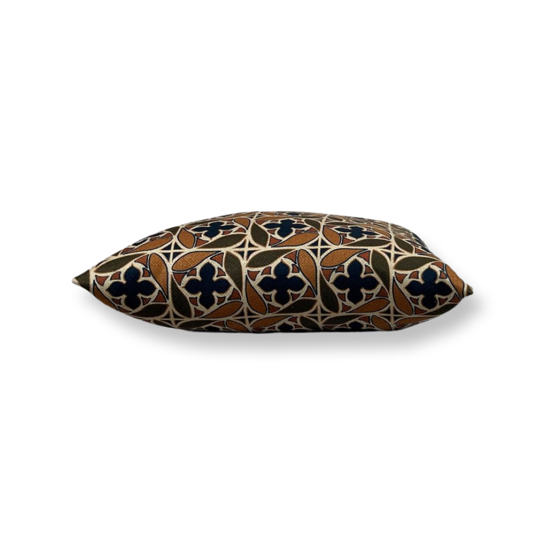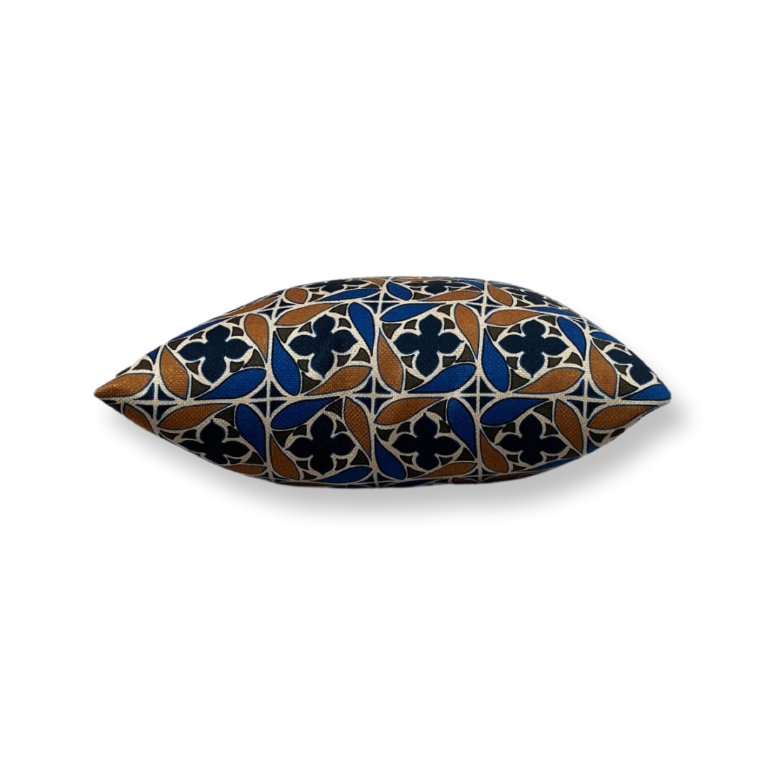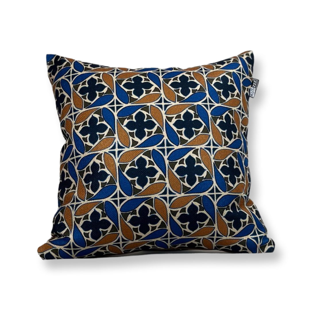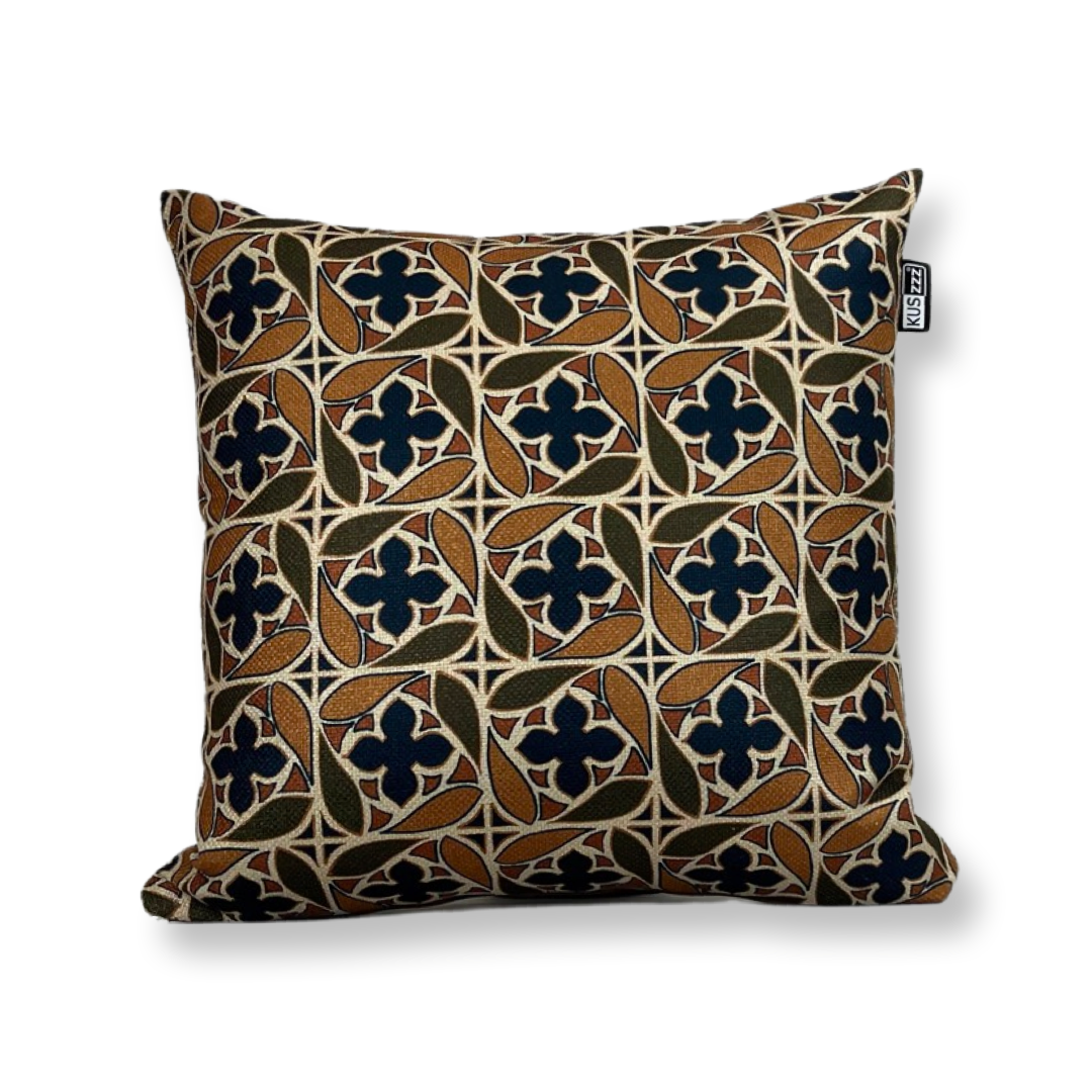Sierkussen van 40x40cm. Retro-stof in twee kleuren. De binnenhoes is gevuld met wattine.