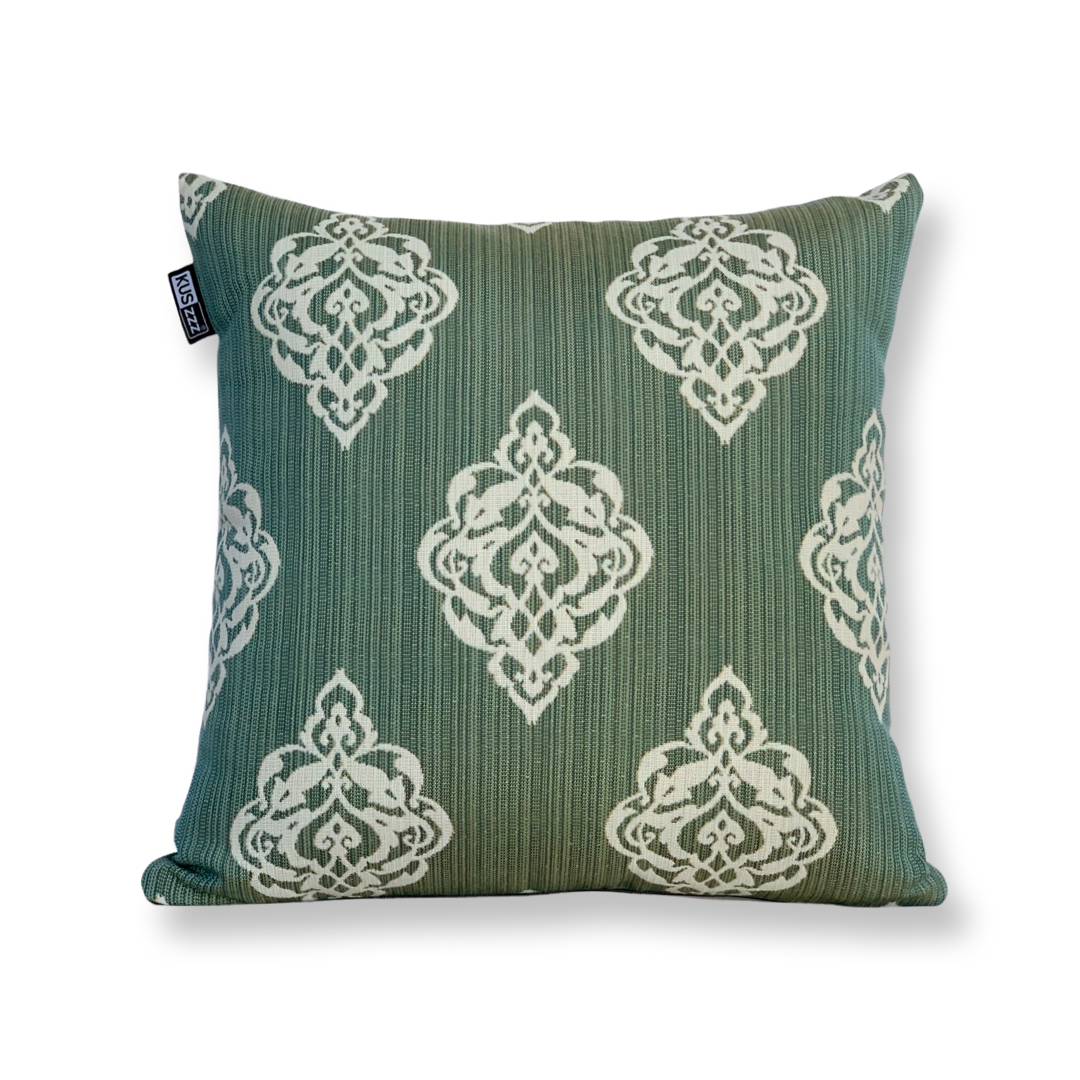 Sierkussen van 40x40cm in Barok stijl. Geschikt voor buitengebruik. De binnenhoes is gevuld met wattine.
