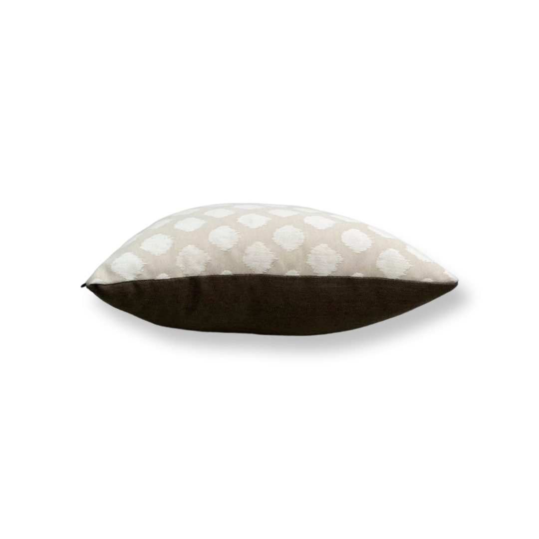 Sierkussen van 40x40cm met een bollenmotief. Geschikt voor buitengebruik. De binnenhoes is gevuld met wattine.